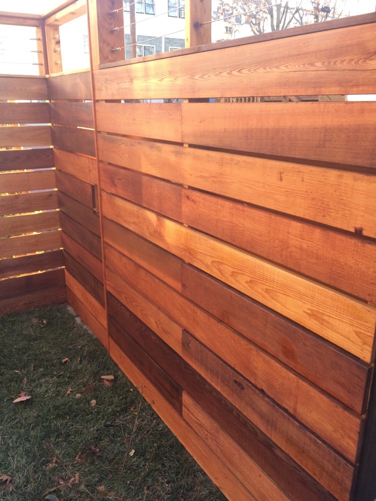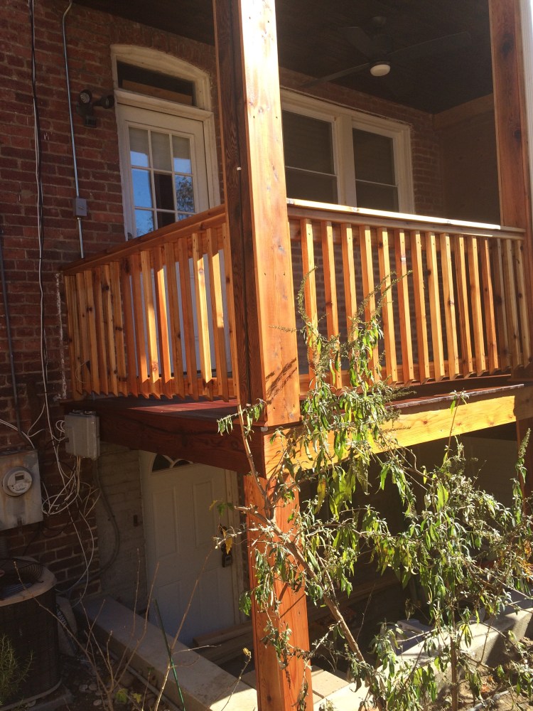 Newly installed cedar fence and Mahagany porch floor was finished with organic raw linseed oil and pine tar. Maintains the natural beauty of the wood while providing superior protection.