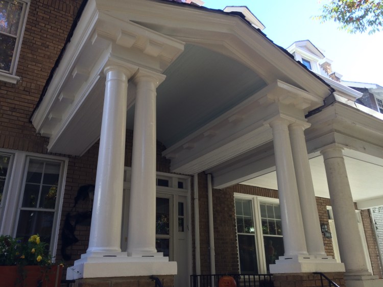 I removed all the old paint from these columns. Applied raw linseed oil then painted three coats of Allback organic linseed oil paint. This is a great solution for restoring the paint on your home.