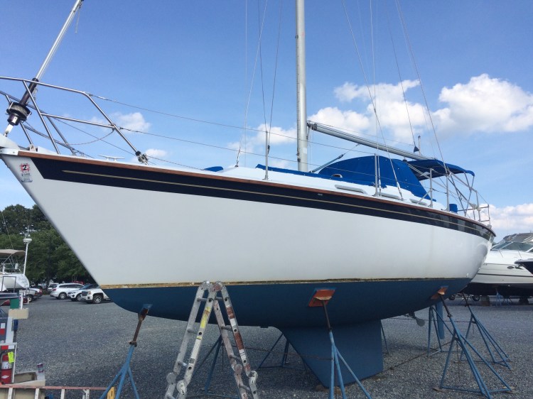 The 30′ Westsail is getting her teak rub rail re done. The old varnish was peeling off and needed to be removed. Once the varnish was removed I cleaned the teak with Deks deck cleaner and proceeded to apply the D1 oil three coats. Now I’m applying the D2 oil varnish six coats! Deks Olje is a oil varnish ment not to peel or crack. The maintenance is much less over time just clean with the Deks cleaner and re-coat. No sanding no removal of old varnish. I’m anticipating three to five years until it has to be recoated!