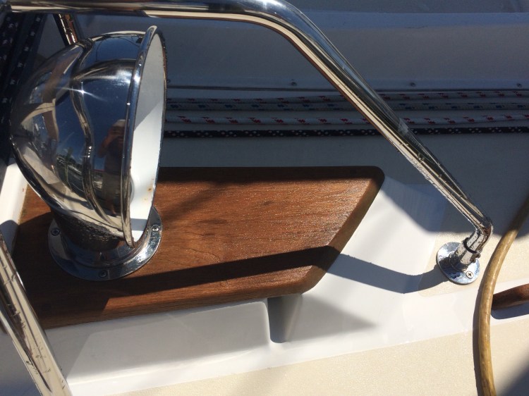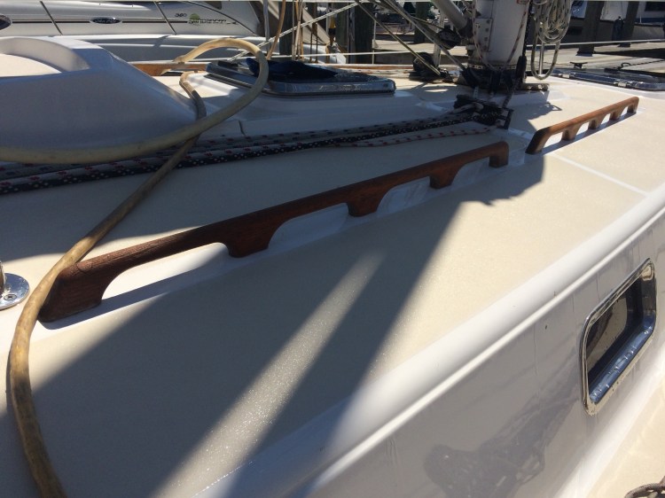 After years of weather on the Chesapeake the teak on this boat has changed. The old varnish has failed and needs the be removed. After that I clean the teak to remove the oxidation and dirt. This makes the teak ready for a old system that I have mastered over the years. This system is a oil based varnish that doesn’t peal or crack. For this project I’m only doing the second step, oiling the the wood which rejuvenates the wood and repels water basically the wood will be ready for the third step varnishing. The photos here show the teak after the old varnish has been removed and the cleaned. By the way the linseed oil soap I make will achieve this result.