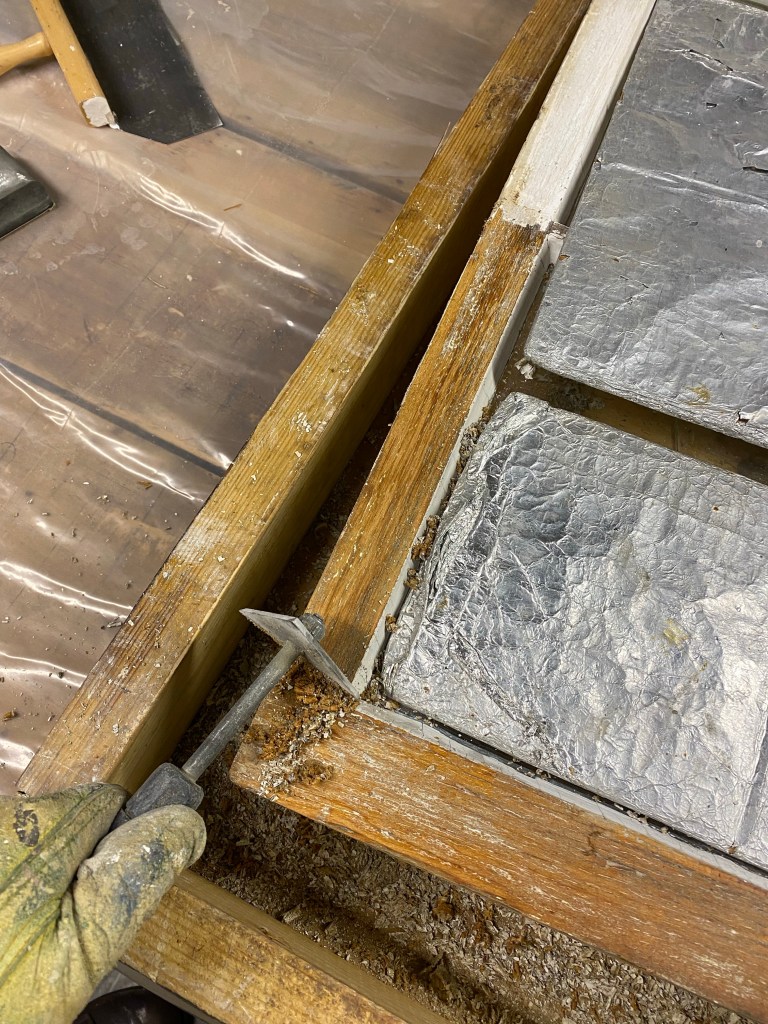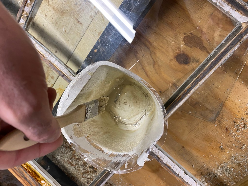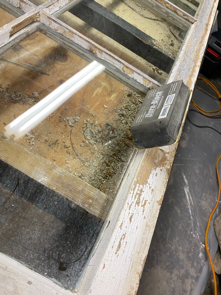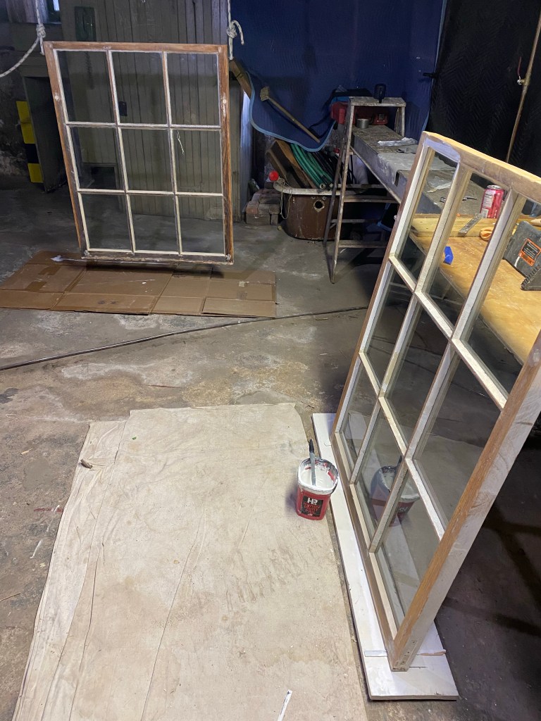 The photos in this post show a project I’ve been working on over this winter. It’s an old school in Hemlock NY now converted to Little Lakes Community Center. I’ve been tasked with restoring all the windows, window frames and doors. This batch of photos shows the weathered windows being worked on step by step to the point of being painted. A prior post shows the painting and glazing steps. This project is a great example of much needed maintenance and how it can be done using linseed oil products. If this was a total restoration all the glass would be removed and reset. This project is repairing the window utilizing the old glazing where still viable.