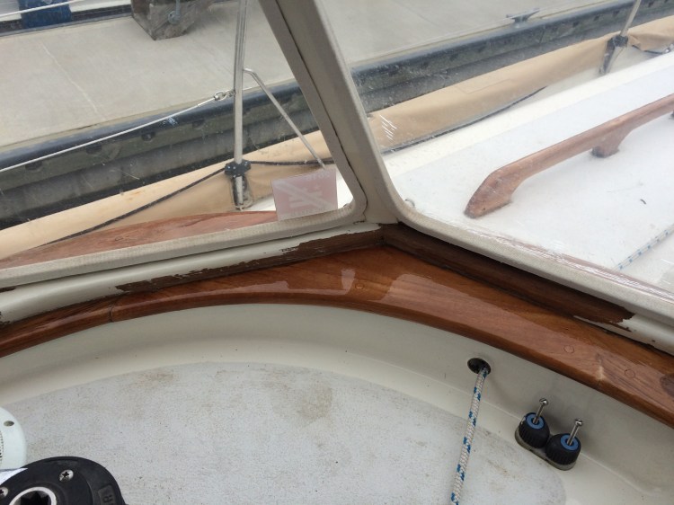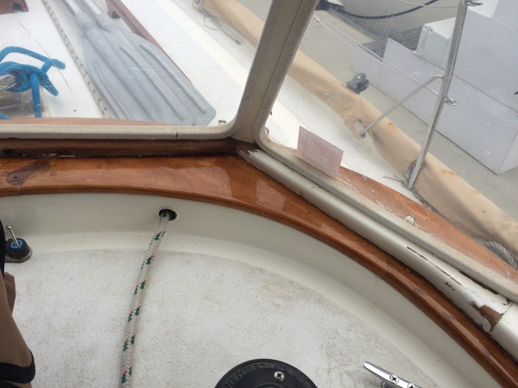Just want to show this old Pierson’s teak work. I just appled the second coat of Deks Olji D2 oil varnish four more to go! What a great system! Give Swab, Inc. a call for a teak/bright work consultation. The varnish I use is a non film forming oil varnish a oil is applied first to penitrate and water proof the teak prior to varvishing. The system is great and provides a much lower maintanace schedule down the road!
