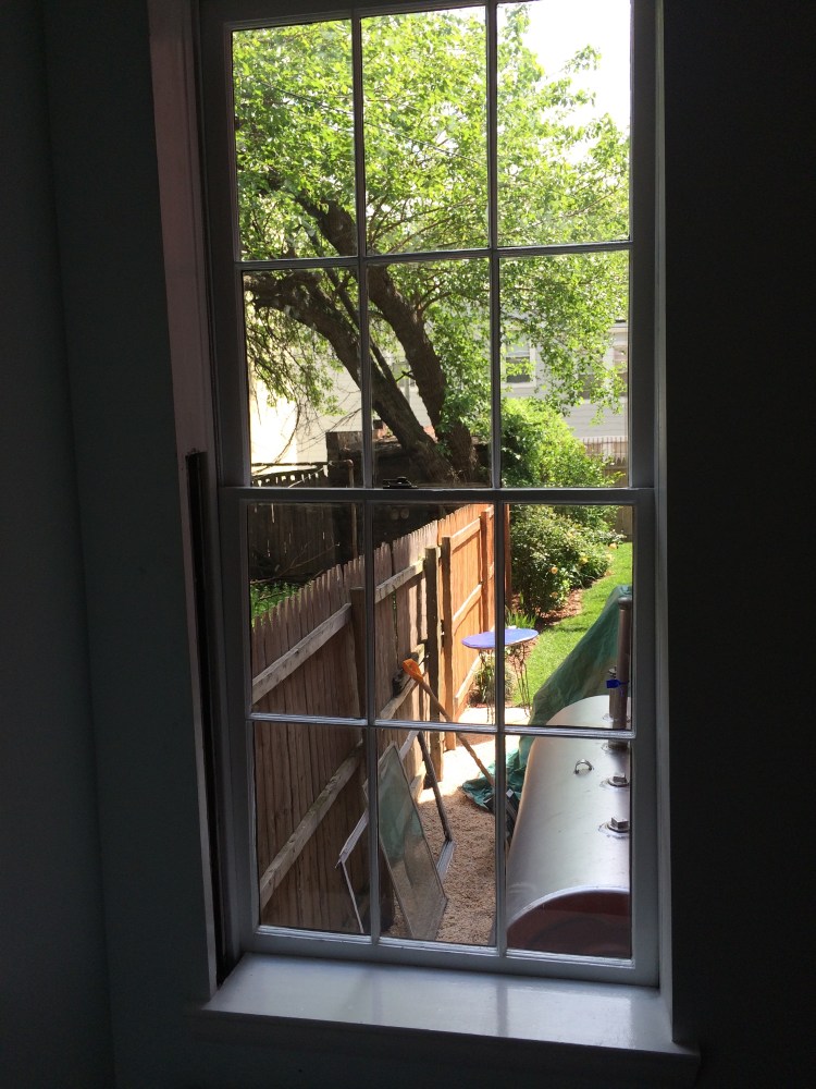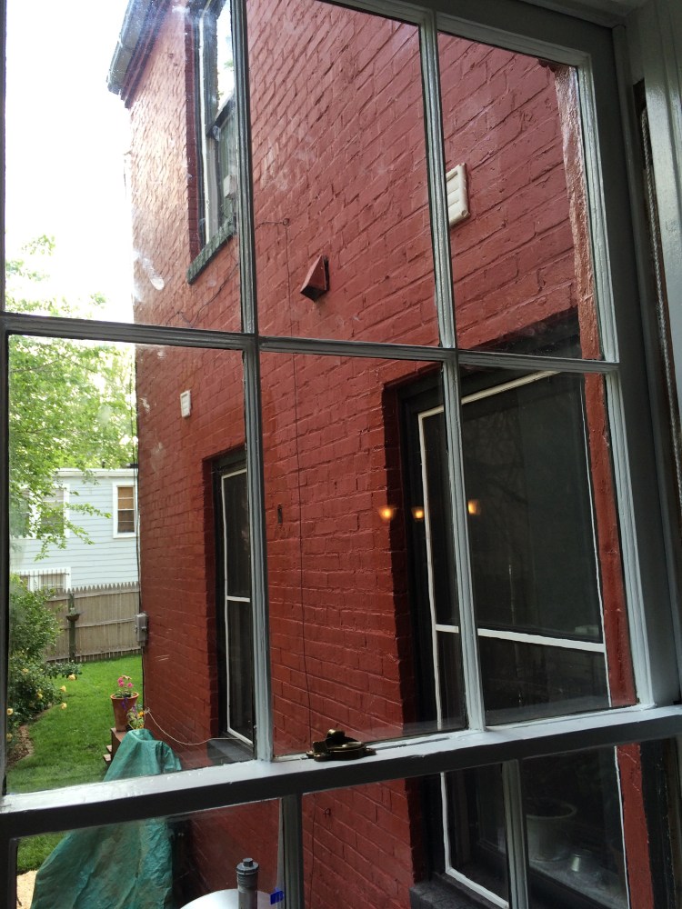 This historic window was brought back to life. I believe the window dates back to this hitoric row house from 1890. The window was basically ready to fall apart. I removed the sashes and removed all the paint and glass. I noticed that there was only three originally Paines of glass and my friend Daniel supplied and cut the correct vintage glass. The sashes were oiled with organic raw linseed oil and the rabbits coated with shalac. This is done to keep the putty from drying out. I back bedded and reset all the glass and painted the sashes with organic linseed oil paint. This paint and glazing is far superior than acrylic paint and chemically produced glazing. Best of all they are historically correct.