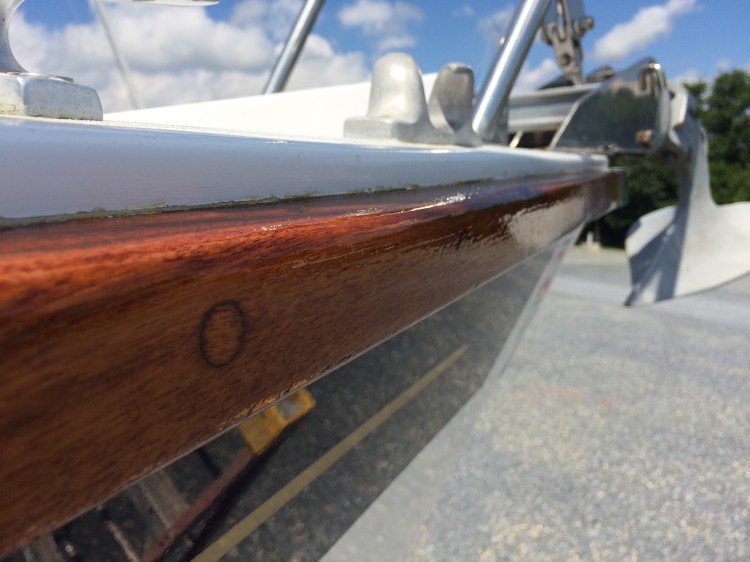 The 30′ Westsail is getting her teak rub rail re done. The old varnish was peeling off and needed to be removed. Once the varnish was removed I cleaned the teak with Deks deck cleaner and proceeded to apply the D1 oil three coats. Now I’m applying the D2 oil varnish six coats! Deks Olje is a oil varnish ment not to peel or crack. The maintenance is much less over time just clean with the Deks cleaner and re-coat. No sanding no removal of old varnish. I’m anticipating three to five years until it has to be recoated!